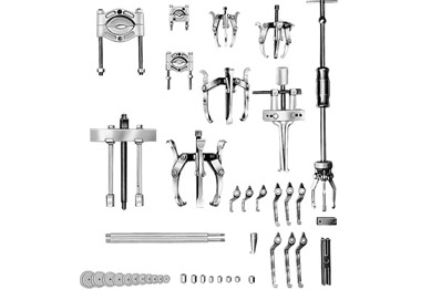 這組拔輪器正是你所需的拆齒輪、軸承等的理想工具。它包括拔輪器、拉拔夾片及多種配件。