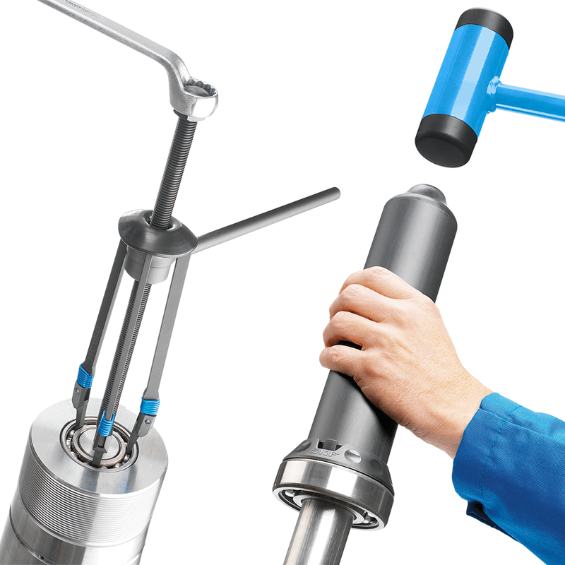 多用途組合工具,方便快速地進(jìn)行安裝和拆卸TMMK系列設(shè)計(jì)用于快速、精確地在軸、軸承座和盲座上安裝和拆卸深溝球軸承。 TMMK 10-35適用于孔徑從10至35mm的軸承,而TMMK 20-50適用于孔徑從20至50mm的軸承。 在安裝方面,這種多用途組合工具不僅適用于軸承,還可用于套環(huán)、密封圈、皮帶輪以及其它類似產(chǎn)品。 多功能安裝工具可按照各種軸承和相關(guān)部件。 使用特殊的帶滑動(dòng)錘的三臂拉拔器可輕松從盲座和軸上拆下深溝球軸承。