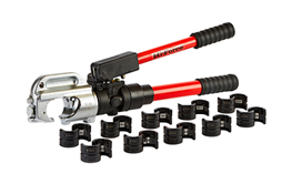 SC系列一體式液壓電纜壓線鉗有6種型號,可選C型開口或平行導向開口設計。裝有自動壓力釋放閥,配有標準模具套組和手提箱。帶180°旋轉頭的設計便于在狹窄空間內使用。